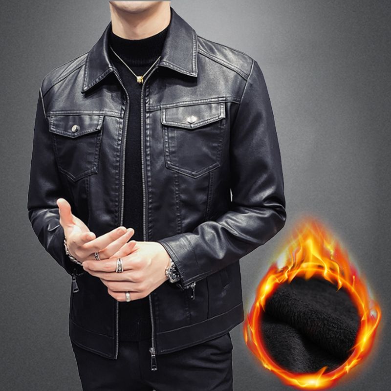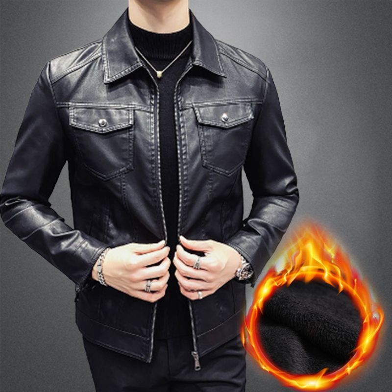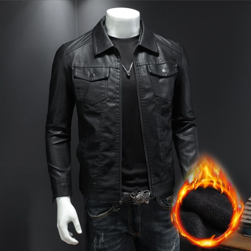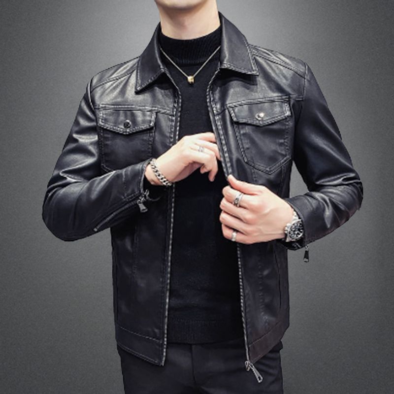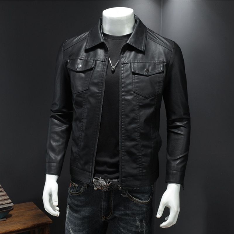 [Gift for Men] Men’s Windproof Leather Jacket Black