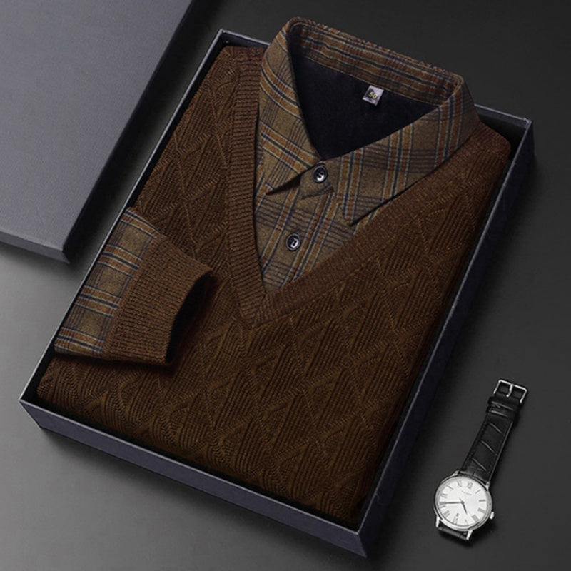 Package Include: 1 * Men's Fake Two Piece Lapel Knitted Sweater