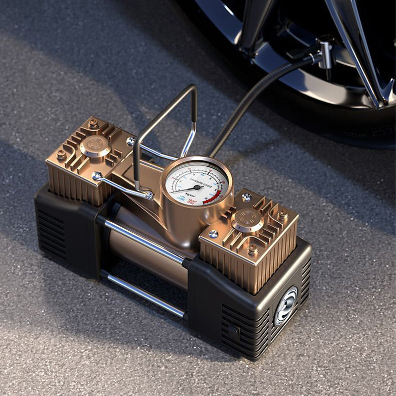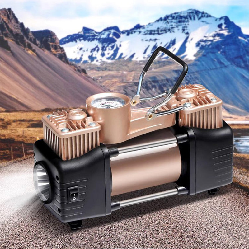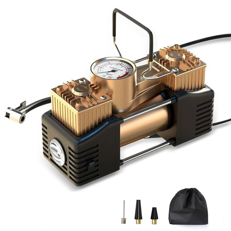 Portable Tire Inflator with Pressure Gauge & 3 Nozzles