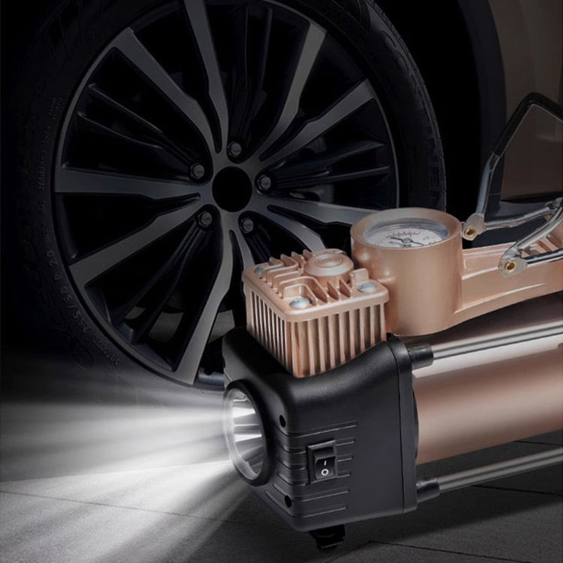 BRIGHT LED LIGHT: Integrated LED light provides illumination for nighttime use, allowing for safe and convenient tire inflation in low-light conditions, enhancing visibility during emergencies.