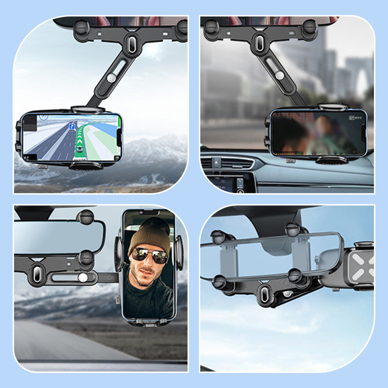 360-Degree Rotatable Adjustable Car Phone Rearview Mirror Holder