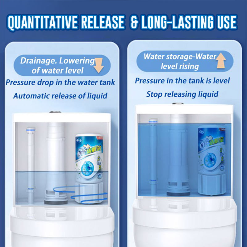Quantitative release & long-lasting use: The concentrated liquid dissolves evenly and automatically removes dirt, and the slow-release formula can flush over 4000 times (about 6 months).