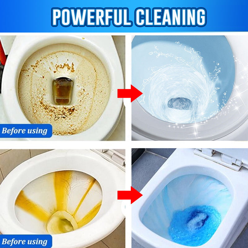 All-round cleaning: Produces sparkling blue water that comes from the toilet tank which cleans the toilet the rim, inner wall, sewer pipe, and other parts of the toilet thoroughly.