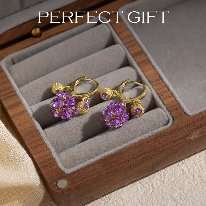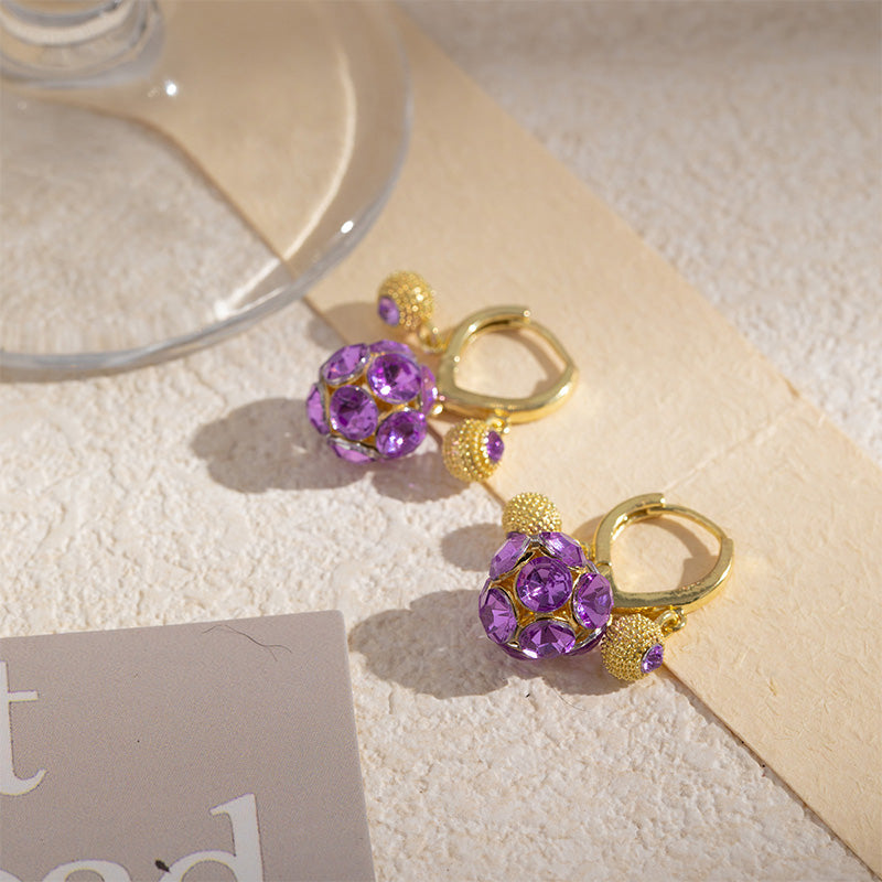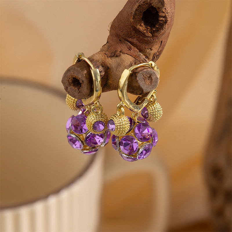 Package includes: 1 * Vintage Gold-Plated Hoop Earrings with Purple Crystal Sphere