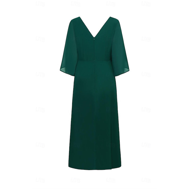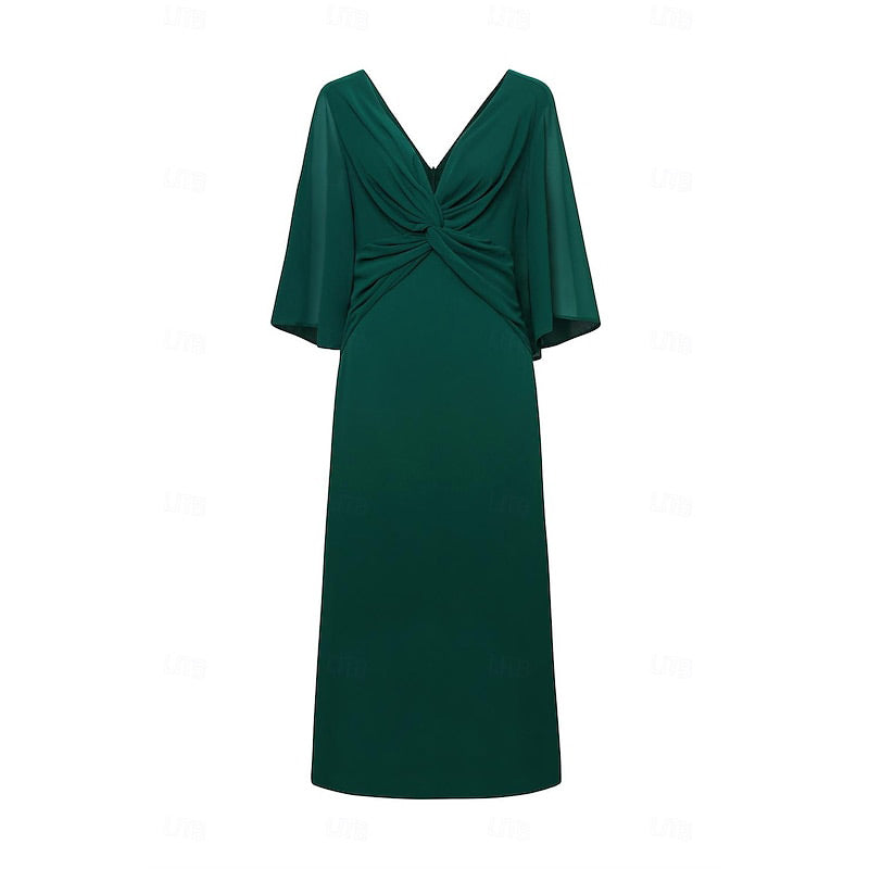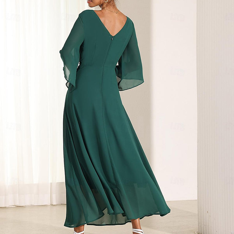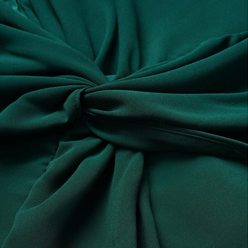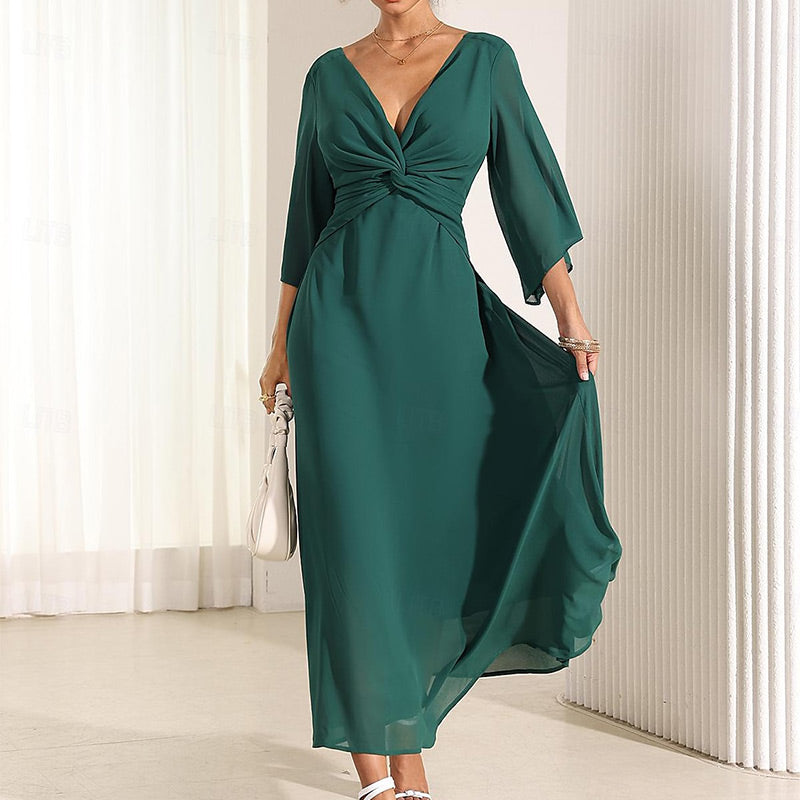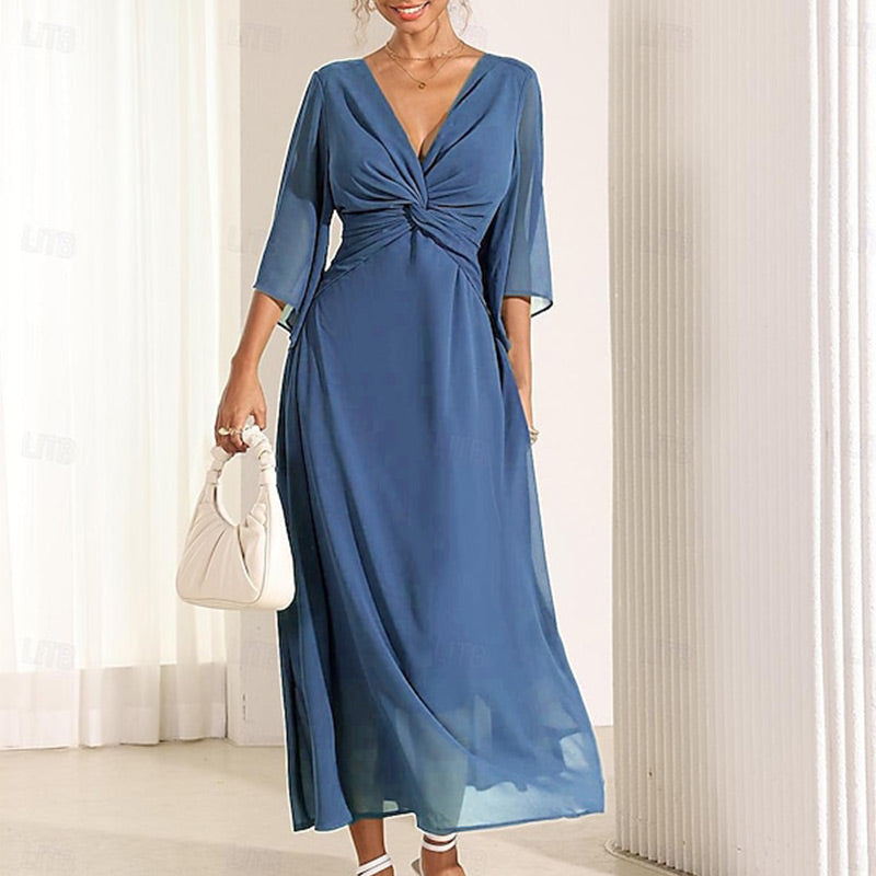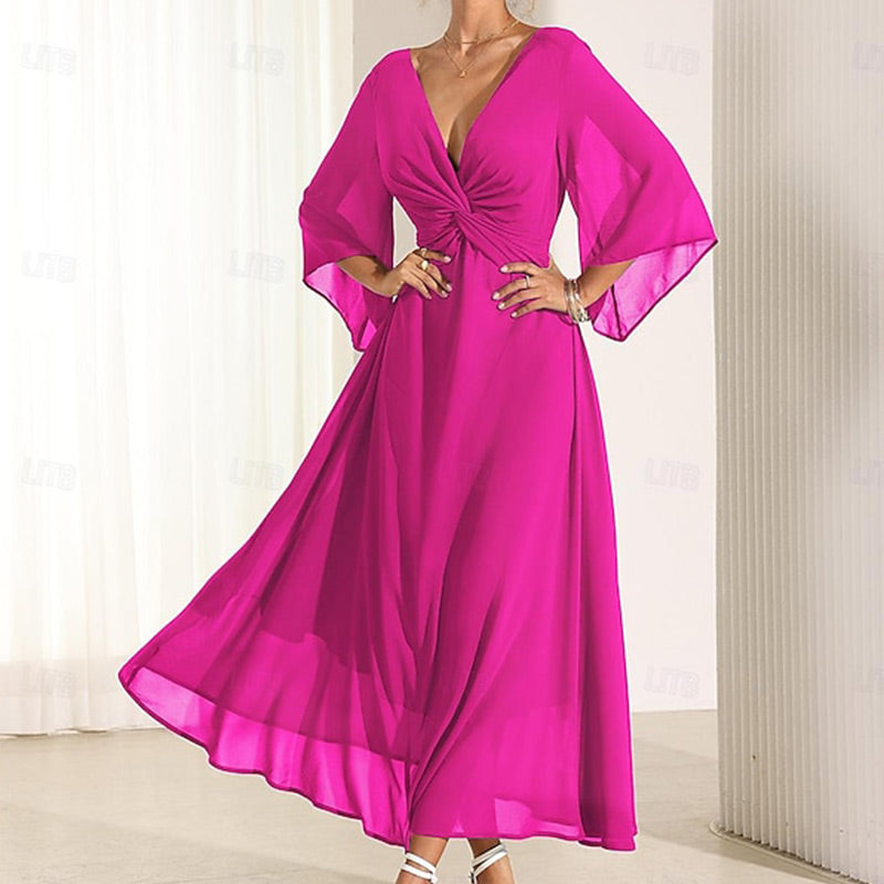 Women's Elegant Chiffon Twisted Dress with V-Neck & Flared Sleeve